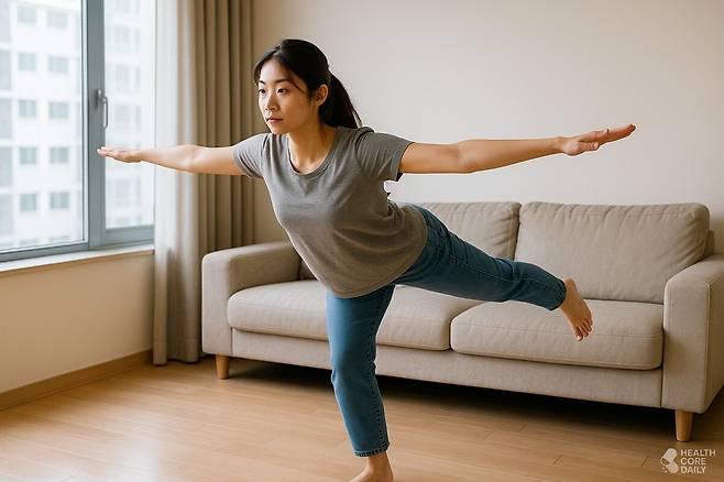 이렇게 양쪽 다리를 번갈아 수행하며 하루 10분, 주 3회 이상 실시하면 균형감과 코어 안정성이 눈에 띄게 향상된다.