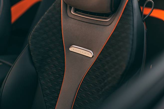 글로스 포퍼스(Gloss Porpoise)와 글로스 만다린 컬러로 마감된 바투르 고유의 레이싱 스트라이프는 대담한 디자인의 차체 정중앙을 가로지르며, 이 색상 조합은 인테리어 가죽 컬러와 일치하도록 구성돼 오픈 톱 틈새로 보이는 실내와 유기적으로 연결된다.