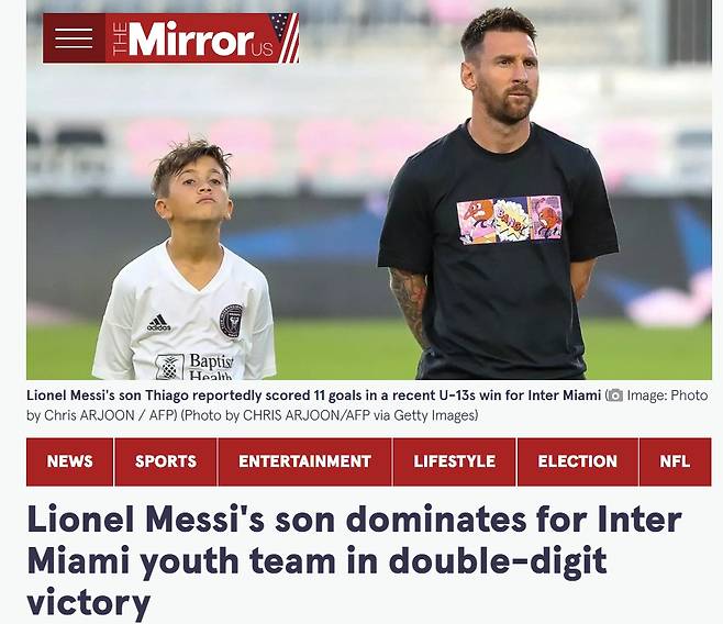 미국 매체 'MIrror US'는 7일(한국시간) "메시의 아들이 인터 마이애미 유소년 팀에서 두 자릿수 승리를 거머쥐었다. 그는 애틀란타 유나이트드와의 MLS컵 U-13 경기에서 11골을 넣는 압도적인 활약을 펼쳤다"라고 보도했다.