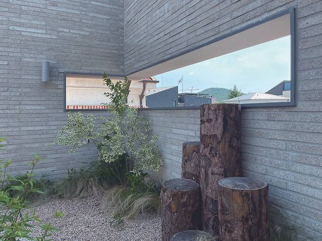 두 건물 사이에 길게 자리한 1층 정원