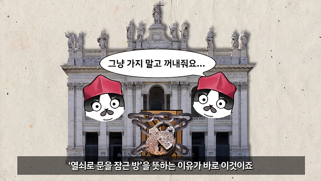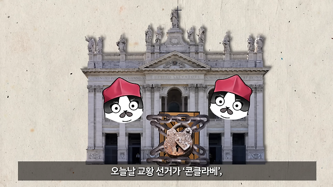 ‘콘클라베’란 라틴어로 "열쇠로 잠긴 방(con clave)"이라는 뜻이에요.실제로 교황 선출은 바티칸 시국 안에 있는 시스티나 성당에서 비공개로 진행되며, 이 과정이 바로 콘클라베입니다.