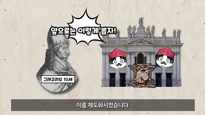 교황은 ‘추기경단(College of Cardinals)’이라는 집단이 투표하여 뽑습니다.