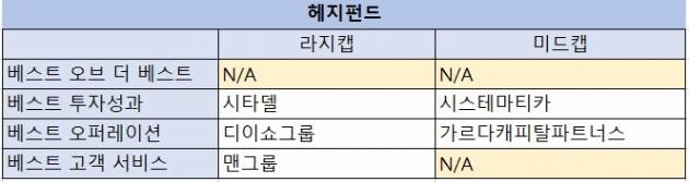 미드캡 헤지펀드 운용사 중에서도 올해 베스트 운용사는 선정되지 않았다.