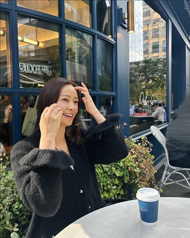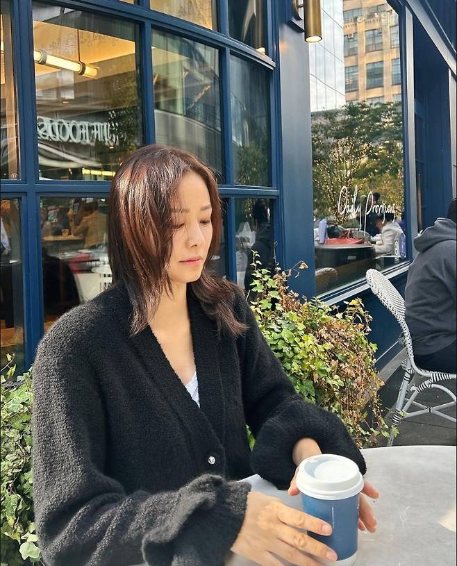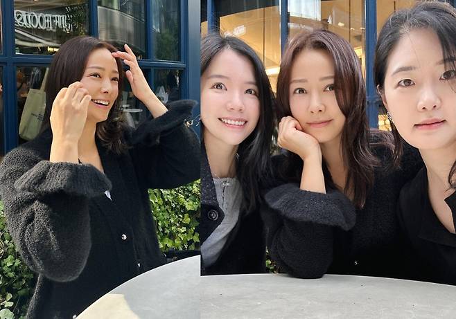 손태영은 두꺼운 검은색 카디건을 착용해 우아하고 고급스러운 분위기를 돋보였습니다.