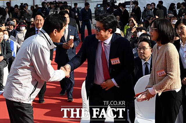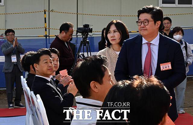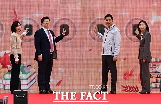 [더팩트ㅣ임영무 기자] 김병주 MBK파트너스 회장과 오세훈 서울시장, 최호정 서울시의회 의장 등 참석자들이 4일 오후 서울 서대문구 북가좌동 공공도서관 부지에서 열린 '서울시립 김병주도서관' 착공식에 참석해 착공 세리머니를 하고 있다.