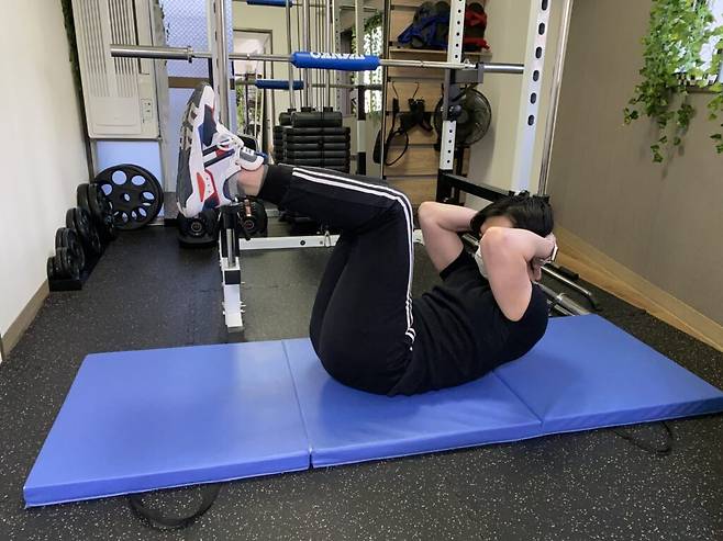 ✅ 크런치 → 상복부 지방 태우기 (20회 × 3세트)