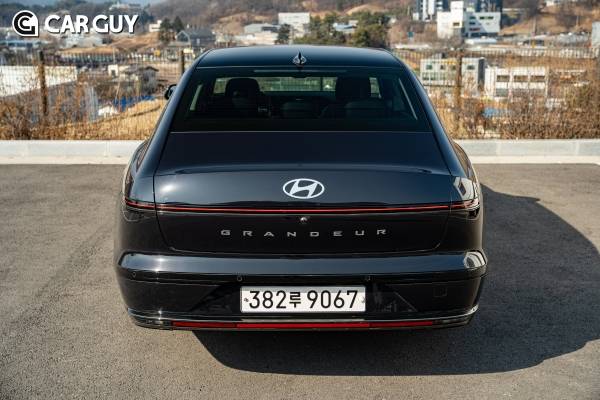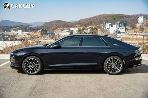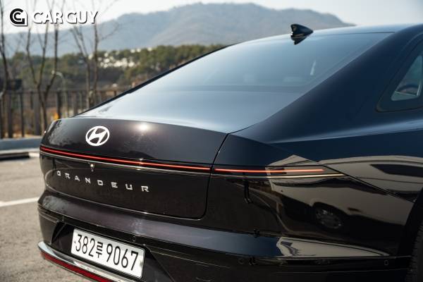 측면은 그랜저가 현대차의 기함이라는 것을 제대로 보여준다. 보닛부터 트렁크까지 이어진 측면 라인과 1세대 그랜저에서 볼 수 있었던 독특한 C필러 유리창을 오마주했다. 25년이 넘는 역사의 해리티지를 지금에 맞게 복원한 부분이다.