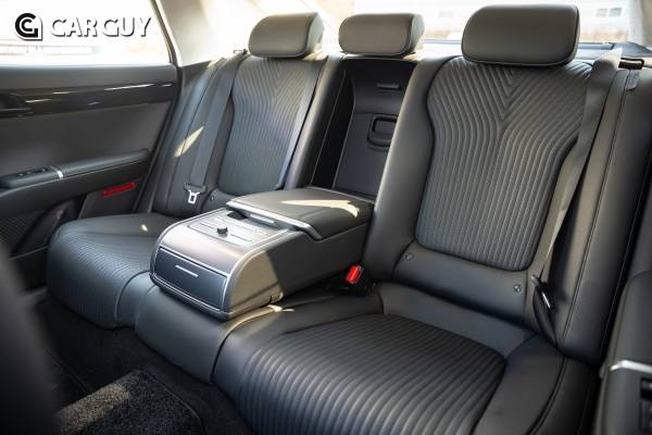 2열은 더 길어진 휠베이스 덕분에 광활하다. 키 183cm의 기자가 앞 뒤로 앉아도 다리를 꼬고 있을 수 있을 정도로 넓다. 헤드룸도 천장을 깊게 파 놓아 주먹 한 개가 들어갈 정도로 여유롭다. 2열 시트는 리클라이닝과 열선,통풍을 제공해 쇼퍼 드리븐으로 모자라지 않다.