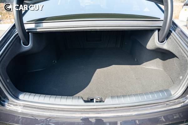 전동식으로 열리는 트렁크 공간은 넉넉하다. 길게 끌고 온 루프라인 때문에 트렁크 입구는 위 아래로 좁아졌지만 공간은 상당히 넓다. 골프백 3개는 무난히 들어갈 것으로 보인다.