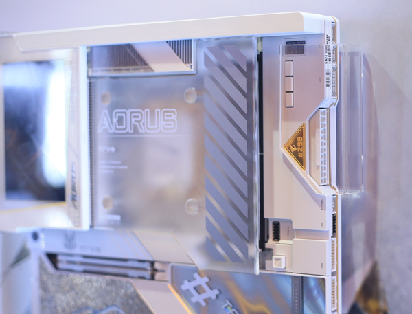 지난해에는 최상급 모델들에만 적용되던 기가바이트 EZ-랫치 기능은 이제 더 하위 라인업까지 확대 적용되는 듯합니다. 최고급 어로스 익스트림, 마스터 등급 뿐만 아니라 이제 어로스 엘리트 등급의 메인보드에도 SSD, 그래픽카드를 원터치로 손쉽게 탈착할 수 있는 기능이 적용됐습니다. 기가바이트 직원들의 설명에 따르면 앞으로 더 많은 메인보드로 확대 적용될 계획도 있다고 하니, 훨씬 많은 사용자들이 이 편리함을 누릴 수 있게 될 겁니다.