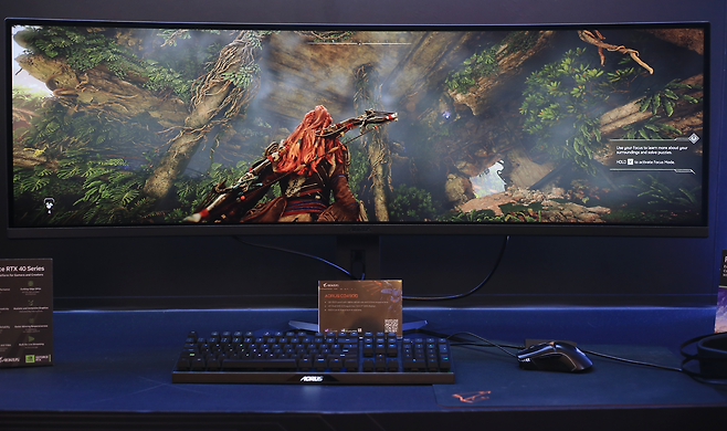어로스 CO49DQ 입니다. 49인치 32:9 비율의 듀얼 QHD 해상도가 전달해 주는 광활한 화면은 실로 경이로운 수준입니다. 저는 몰입감이라는 단어가 너무 남발되는 것을 안 좋아하는 편입니다만, 이 모니터만큼은 예외로 허용하고 싶을 정도입니다.