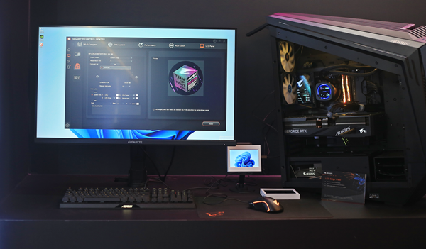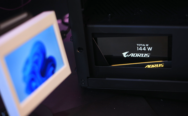 기가바이트의 디스플레이 사랑은 부품을 가리지 않습니다. 파워서플라이도 측면에 디스플레이를 달았고, 메인보드, 그래픽카드는 말할 것도 없죠. 이것을 기가바이트 엣지 뷰(Edge View)라고 부르며, 모든 디스플레이는 기가바이트 컨트롤 센터 앱에서 세부적으로 조정할 수 있습니다.