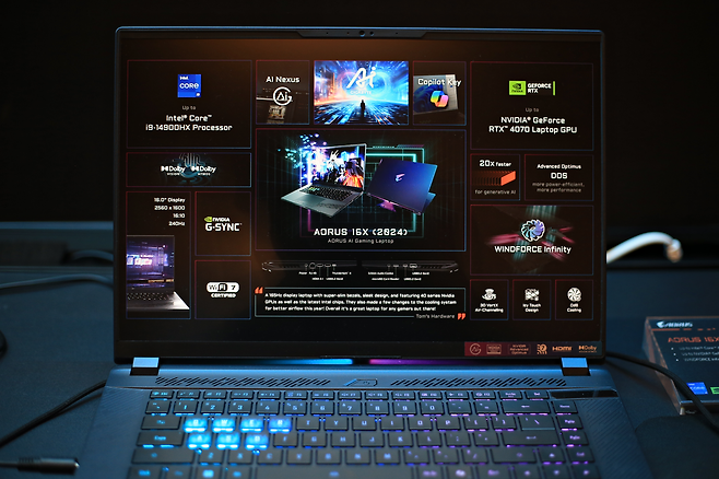 기가바이트는 올해 VIP 전시장에 두 종류의 AI 레디 노트북을 전시했습니다. 기가바이트 어로스 16X, 17X가 그것인데요. 전시장에 공개된 제품들의 사양은 인텔 코어 i9-14900HX + 지포스 RTX 4070~4090(laptop)으로 게이밍, 콘텐츠 제작, 그리고 AI 연산에 특화한 다용도 고사양 노트북들이었습니다. 기가바이트는 이 제품들(어로스 16X, 어로스 17X)을 이용한 AI 인터랙티브 전시장까지 별도 운영 중이라고 하네요. 기회가 된다면 전시장도 방문해서 보여드리겠습니다.