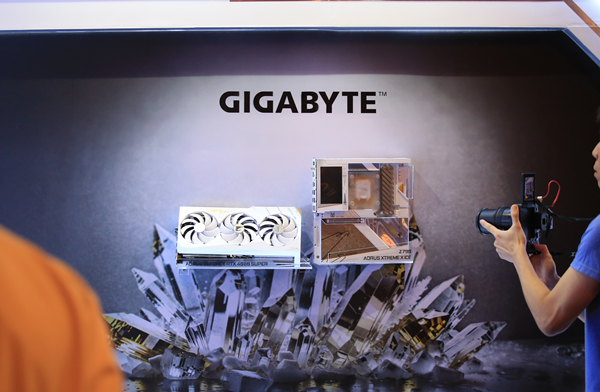 기가바이트 VIP 전시장에 들어가면 가장 먼저 눈에 띄는 것은 바로 이 제품들입니다. 화이트와 골드 색상의 조합으로 만들어진 그래픽카드와 메인보드인데요. 전 세계에 단 300대만 한정 판매하는 초 레어 아이템입니다.