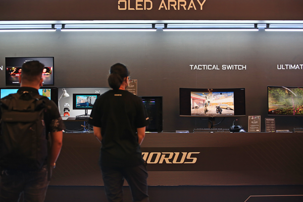 메인보드를 촬영한 후 잠시 앉아 쉬는 중에 주변을 둘러보니 OLED 모니터가 전시된 공간이 눈에 띕니다. 최근 고급 모니터 시장에서 가장 각광 받는 QD-OLED 패널을 사용한 모니터들이라고 하네요. 빼먹을 수 없죠? 바로 달려갔습니다.