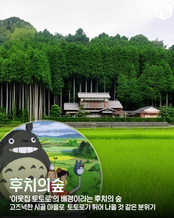 '이웃집 토토로'의 배경이라는 후치의 숲입니다. 마치 토토가 금방이라도 튀어 나올 같은 빽빽 삼나무 숲과 고즈넉한 마을 분위기가 잘 어우러져 일본 시골 여행으로 좋으니 한적한 여행으로 추천드립니다.