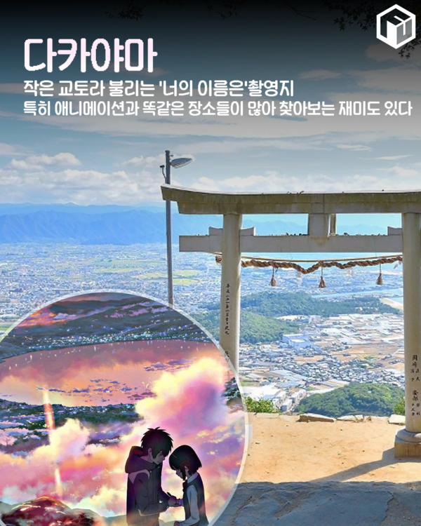 작은 교토라 불리는 '너의 이름은'촬영지 다카야마 입니다. 특히 다카야마 내에는 너의 이름 내 등장한 실제 장소들이 많은데요. 장소들을 한 곳 씩 방문해 애니메이션을 회상하는 재미가 있는 소도시입니다.