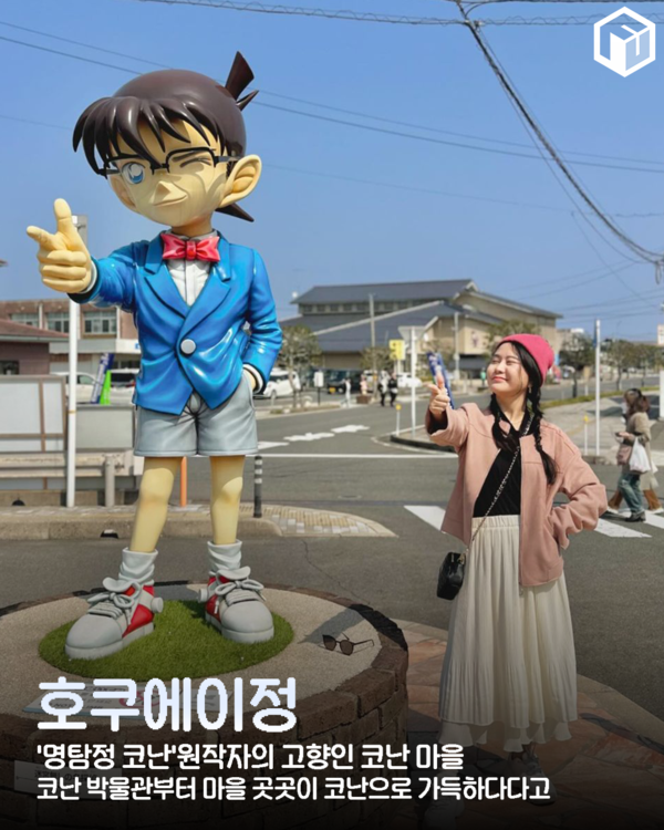 '명탐정 코난'원작자의 고향인 호쿠에이정입니다. 특히 이 곳은 일본 돗토리현 위치한 유라역은 JR코난역으로 역의 명칭을 바꿀만큼 코난에 진심인 곳으로 코난 덕후들에게는 성지 순례 장소이기도 합니다.