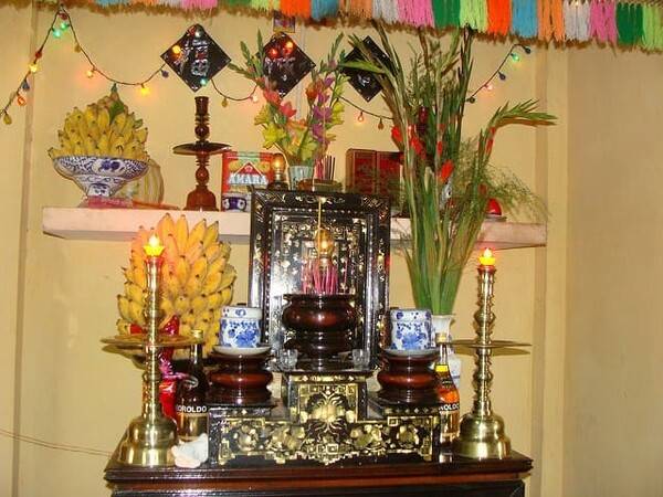 가정의 경제력을 반영하기도 해 더 부유한 가정일수록 반터를 화려하게 꾸미곤 하는데요. 베트남 사람의 집에 방문할 일이 생긴다면 집의 반터 앞에서 묵념하듯 고개를 숙여 예의를 표하는 것이 좋습니다.