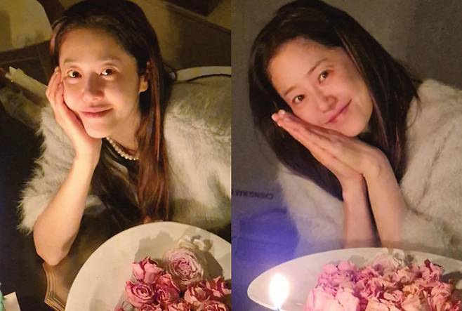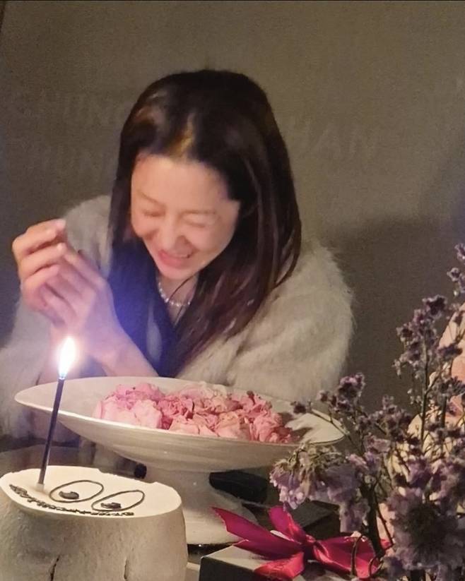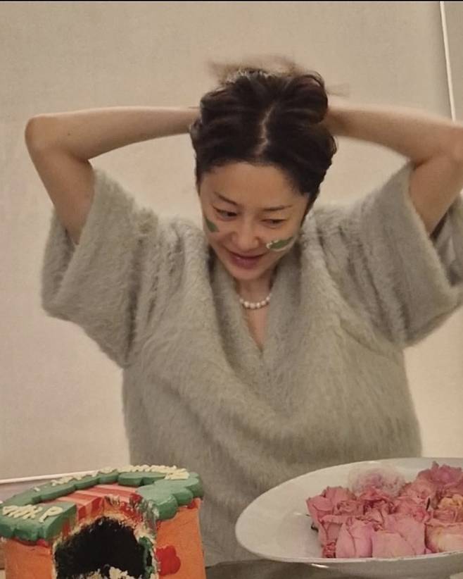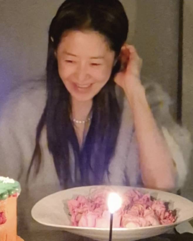 화려한 장식 없이도 빛나는 분위기로 생일 케이크보다 더 눈길을 끌었으며, 편안한 니트와 진주 목걸이로 클래식한 우아함을 더했습니다.