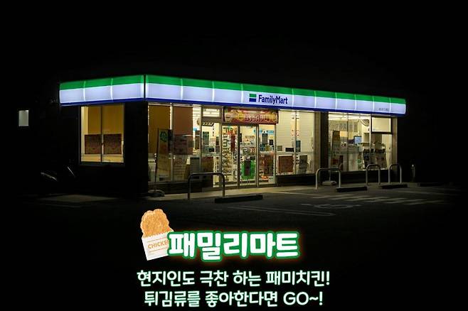 패미치킨(후라이드 치킨) / 삼각김밥(참치마요, 우메보시) / 오코노미야키 팝스 / 일본 한정판 음료나 초콜릿류
