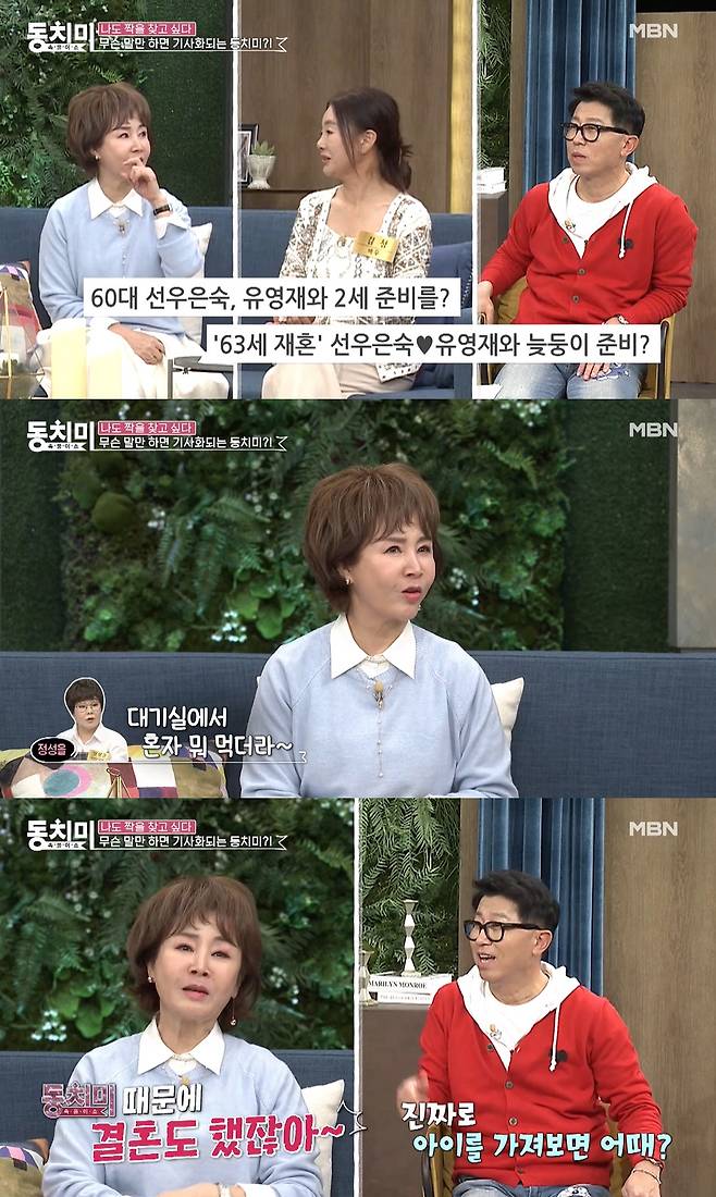 그러자 최홍림은 "진짜 애를 가지면 대박이다. 진짜 가져보는 게 어때? 많은 여성들에게 희망을 주는 거다"라고 말했고 선우은숙은 "'동치미' 때문에 결혼도 하지 않았냐"고 너스레를 떨었다.