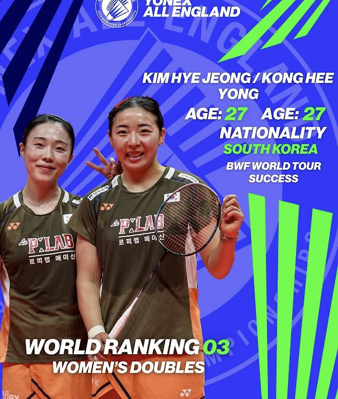 여기에 최근 무서운 기세로 치고 올라온 김혜정-공희용 조의 가세는 한국 배드민턴의 두터운 뎁스를 증명한다. 특히 전영오픈 조직위원회가 공식 인스타그램을 통해 김혜정-공희용 조를 비중 있게 다룬 것은, 노련미의 백하나-이소희 조와 함께 한국 여자 복식이 세계 표준임을 인정한 셈이다. 이제 전영오픈은 한국 선수들이 중심이 되어 세계 배드민턴의 트렌드를 주도하는 무대로 완전히 탈바꿈했다.