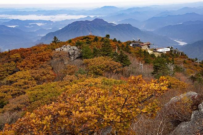 ๋์ ์ฐ์ ์ ๋ถ ๋ฌด์ฃผยท๊ฒฝ๋จ ๊ฑฐ์ฐฝยท๊ฒฝ๋ถ ์ผ๋ถ์ ๊ฑธ์น ๋ช ์ฐ์ผ๋ก ํด๋ฐ 1,614m์ ๋์ ์ฐ๊ตญ๋ฆฝ๊ณต์์ด ์ค์ฌ์ ๋๋ค. ๊ฐ์์ฒ ๋จํ๊ณผ ์ต์ ๊ตฐ๋ฝ, ๊ฒจ์ธ์ฒ ์ค๊ฒฝ๊ณผ ์ค์ฒ๋ดยทํฅ์ ๋ด ์ผ๋์ ์กฐ๋ง์ด ํนํ ์ ๋ช ํฉ๋๋ค. ๋ฑ์ฐ๋ก๋ ์ด๊ธ์์ฉ ํ๋ฐฉ๋ก๋ถํฐ ๋ฅ์ ์ข ์ฃผ ์ฝ์ค๊น์ง ๋ค์ํด ๊ณ์ ๋ณ๋ก ๋ชจ๋ ์ฆ๊ธธ ๊ฑฐ๋ฆฌ๊ฐ ํ๋ถํฉ๋๋ค.