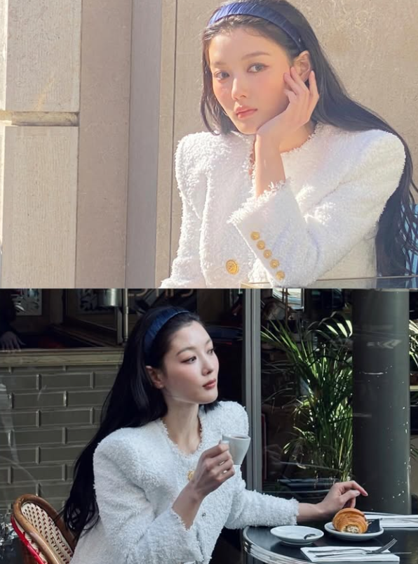김유정은 최근 프랑스 파리에서 열린 발망 패션위크에 참석해, 화이트 타이 블라우스와 블랙 시스루 자켓을 매치한 룩으로 화제를 모았다.