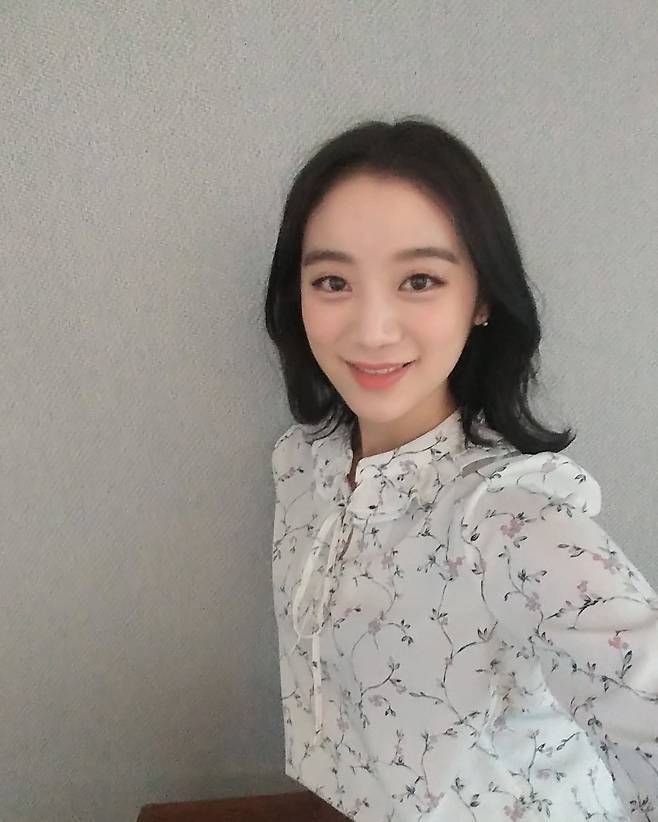 두 번째 사진에서는 화사한 플로럴 패턴의 블라우스를 착용해 우아함을 강조했다. 잔잔한 꽃무늬와 리본 디테일이 로맨틱한 느낌을 더하며, 자연스럽게 떨어지는 실루엣이 세련된 이미지를 부각시킨다. 베이지 톤 배경과 어우러져 전체적으로 부드럽고 고급스러운 분위기를 자아낸다.