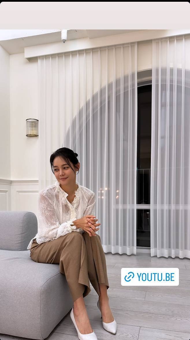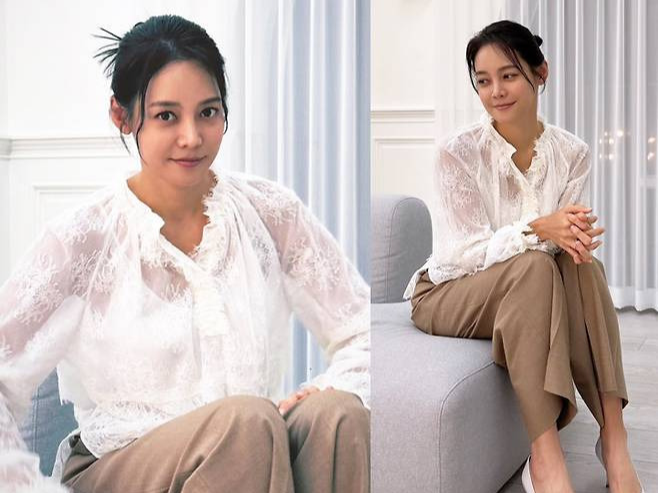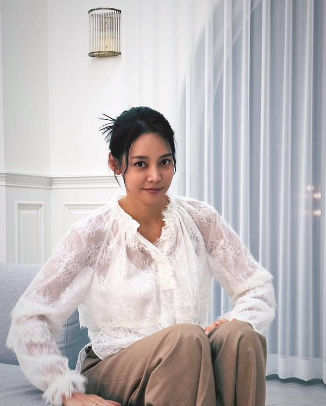 안현모는 화이트 꽃무늬 시스루 블라우스를 착용해 화사하고 청순한 미모를 자랑했습니다.