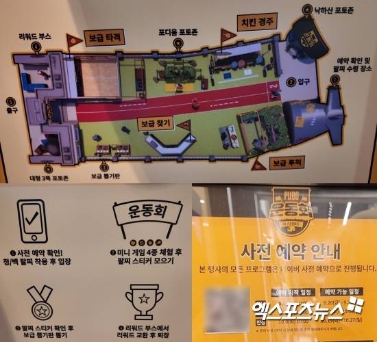 'PUBG 운동회 IN 스타필드' 팝업스토어는 9월 20일부터 9월 30일까지 스타필드 하남점에서, 10월 2일부터 10월 13일까지 스타필드 고양점에서, 10월 15일부터 10월 27일까지 스타필드 안성점에서 운영된다. 네이버 예약을 통해 사전 예약할 수 있으며, 오전 10시 30분부터 오후 9시까지 회차별로 30분씩 이용할 수 있다. 이에 지난 20일부터 'PUBG 운동회 IN 스타필드'를 즐기기 위해 많은 팬이 하남 스타필드를 찾았다.