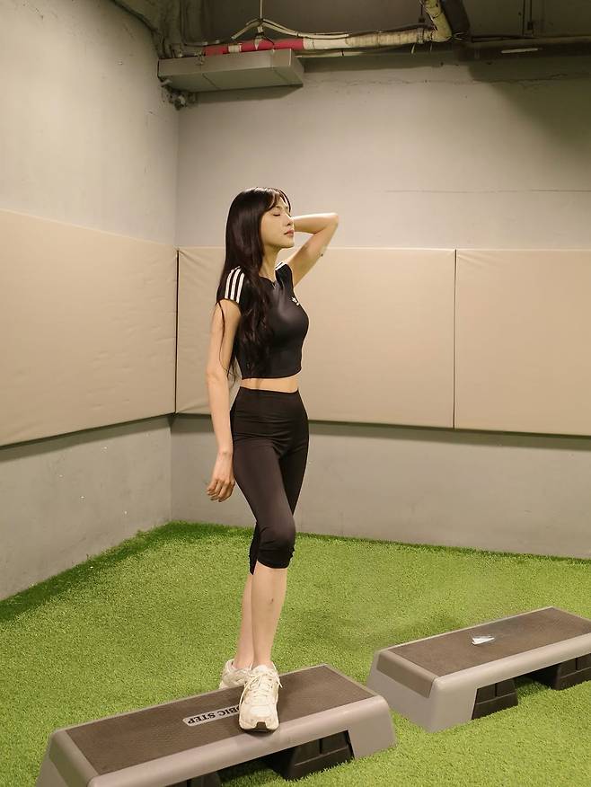 사진 속 오하영은 올블랙 애슬레저룩에 화이트 스니커즈를 매치해 탄탄한 몸매와 건강미를 과시했다.