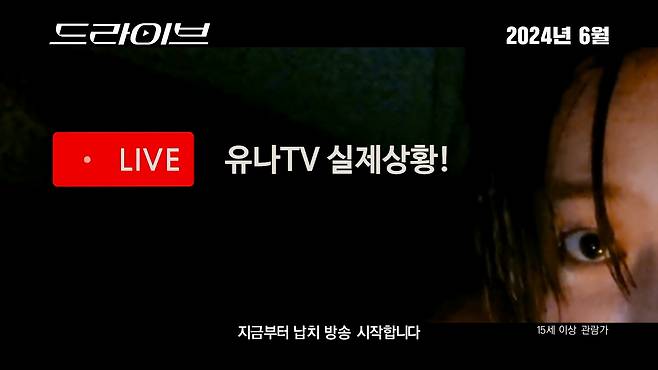 라는 오프닝 멘트로 스릴 넘치는 라이브가 시작됐음을 알린다. 이와 함께 ‘죽음의 질주가 시작된다!’ 카피는 인기 유튜버의 트렁크 납치 사건이 어떤 결말을 맞을지에 대한 궁금증을 자아낸다. 티저 예고편을 공개하며 긴장감을 끌어 올리는 영화 <드라이브>는 6월 개봉 예정이다.