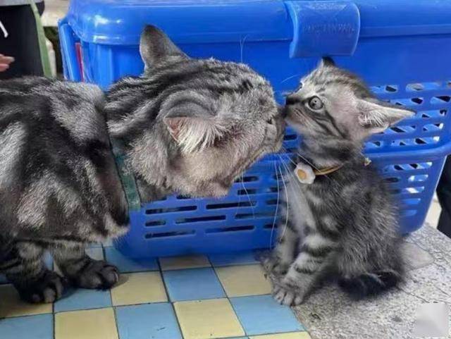 두 고양이는 서로 조심스럽게 냄새를 맡으며, 어쩐지 서로를 낯설어하는 듯한 눈빛을 주고받습니다. 마치 아빠 고양이는 '정말 내 새끼가 맞을까?' 하고 의심스럽고, 아기 고양이는 '이분이 진짜 내 아빠인가?' 하고 얼떨떨해하는 표정이에요.