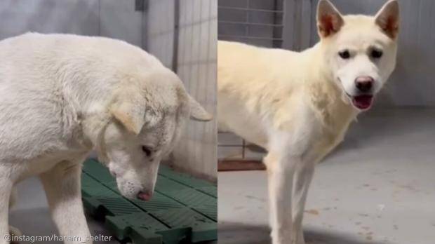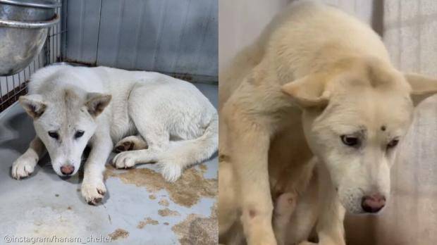 입양 홍보 계정에 따르면 이 강아지의 이름은 '버터'다. 버터는 처음에는 울상을 한 채 견사 한구석에 앉아 사람의 손을 타지 않았다.