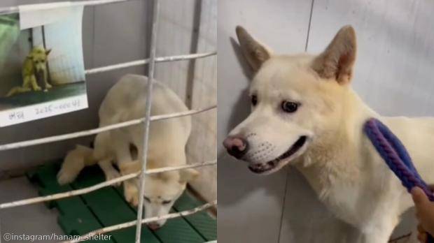 동물보호소 견사에서 항상 울상 짓고 있던 강아지가 점점 변화하는 모습을 보여주며 가족을 기다리고 있다.