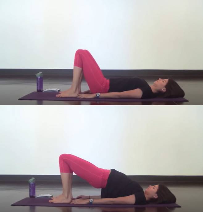 4. 허리를 들어올렸다 내렸다 하는 동작을 반복한다.