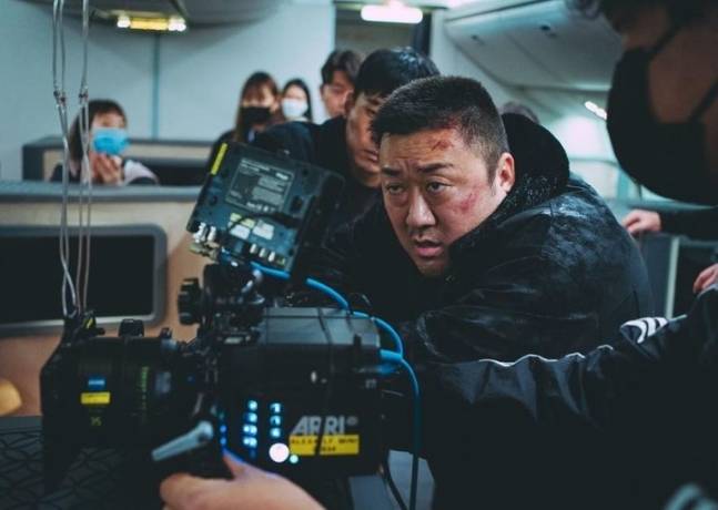 영화 '범죄도시4' 촬영 현장의 마동석 모습. 사진제공=에이비오엔터테인먼트