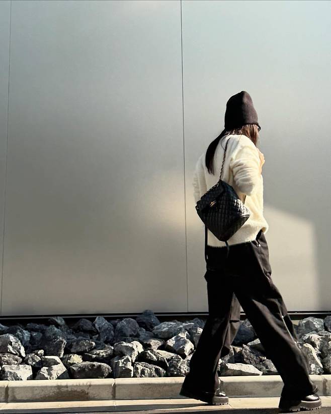 배우 황신혜는 크림색 니트와 블랙 와이드 팬츠로 편안하면서도 세련된 분위기를 연출했다. 여기에 퀼팅 디테일이 돋보이는 블랙 백팩과 블랙 비니를 매치해 전체적으로 모던한 무드를 완성했다. 발끝에는 러기드한 부츠를 더해 실용성과 스타일을 동시에 잡았다.