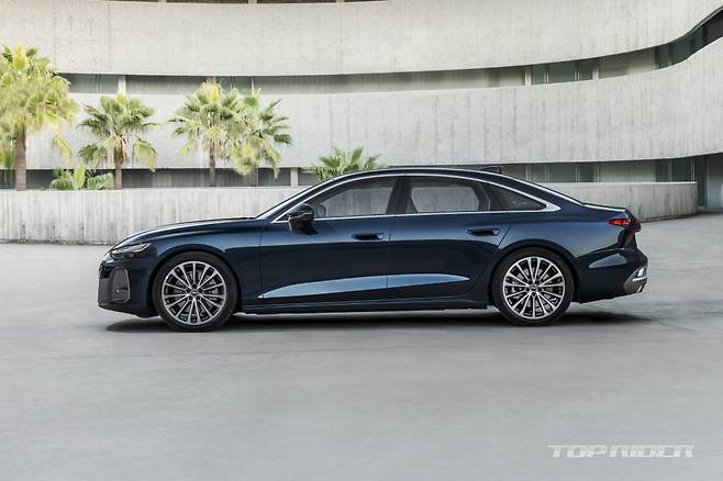 측면부는 긴 휠베이스를 바탕으로 안정적인 프로포션이 구현됐다. 후면부에는 정교한 그래픽이 강조된 테일램프와 좌우를 연결하는 라이팅 바 등이 배치됐다. 신형 A6 세단은 어댑티브 에어 서스펜션이 옵션이다. 주행 상황에 따라 최저지상고를 조절한다.