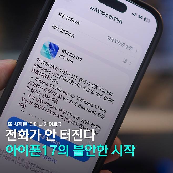 온라인 커뮤니티와 소셜미디어에는 아이폰17의 통신 문제를 호소하는 글들이 하루에도 수십 건씩 올라오고 있다. “와이파이가 자꾸 끊기고, 블루투스도 멋대로 끊기고, 5G 신호도 불안정하다”는 불만이 쏟아지고 있다.