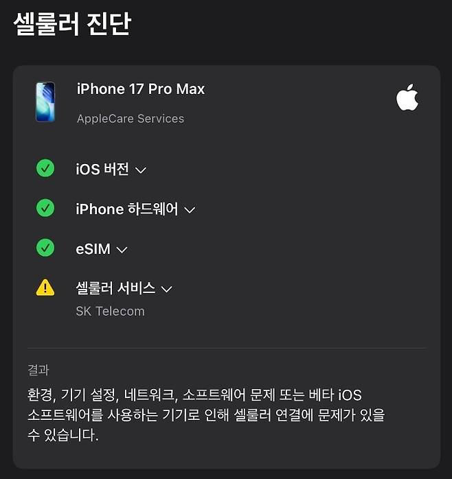 한 사용자는 “iOS 26.0.1로 업데이트한 후에도 아이폰17 프로 맥스에서 와이파이나 블루투스 연결에 전혀 문제가 해결되지 않았다”며 “이전에 이런 문제를 겪어본 적이 없었는데 이번 모델에서만 발생한다”고 불만을 토로했다.