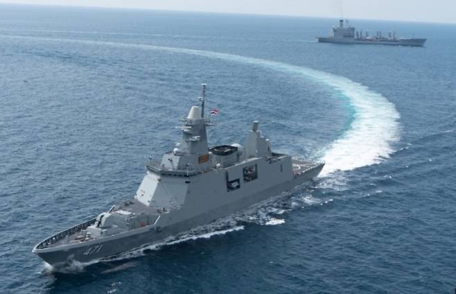 지난 6월 25일 경남 거제의 한화오션 조선소에 태국 해군본부 정책기획부장 착사왓 사이웡 소장을 포함한 7명의 태국 해군 대표단이 방한했다 이들은 한국과 태국 간 해군 정례회의 참석차 왔지만 한화오션 조선소 방문은 특별한 의미를 담고 있었다 대표단은 현지에서 직접 한국의 최신 함정 건조 기술을 확인하면서 깊은 관심과 감탄을 표했다고 알려졌다