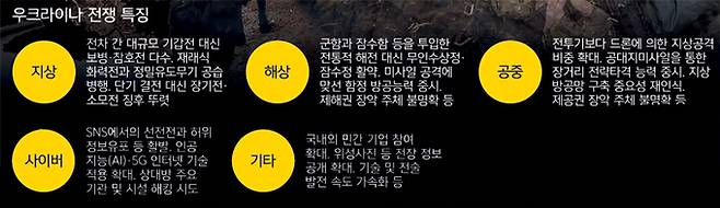 드론 활용이 늘어나는 것과 맞물려 우크라이나 전쟁은 과거와 현재, 미래의 전쟁술이 동시에 등장하며 서로 융합하고 영향을 미치는 양상을 보이고 있다.