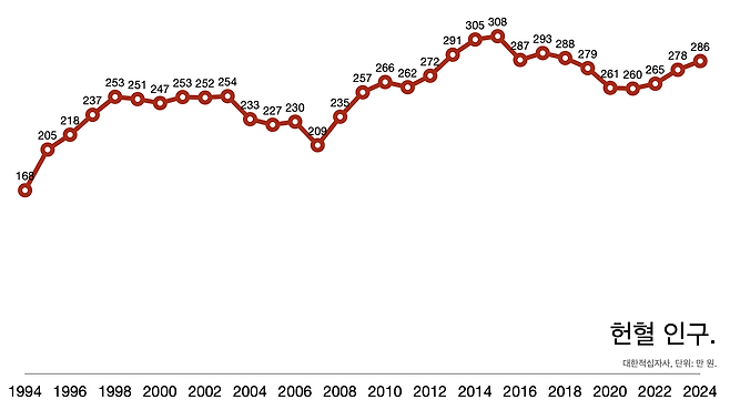 - 헌혈량은 크게 줄지 않았는데 인구 구조 변화에 따라 핼액 수요가 급격히 늘고 있다.