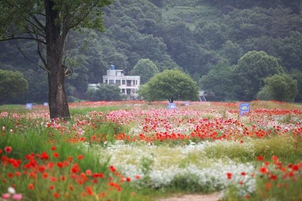 함안의 또 다른 봄 산책 명소인 악양둑방길은 남강변을 따라 이어진 둑방길로, 5월이면 양귀비, 수레국화, 안개초 등 형형색색의 봄꽃이 만개해요. 꽃밭 사이로 난 산책로를 따라 걷다 보면 울창한 갯버들 숲과 악양루, 그리고 탁 트인 남강 전망이 이어집니다.