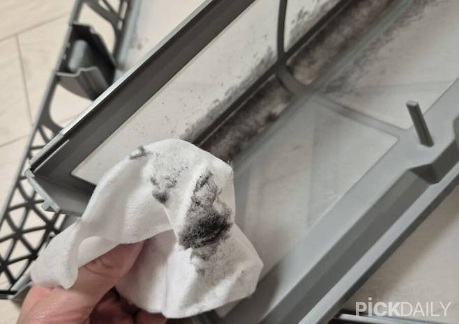 건조기를 사용하고나면 이렇게 많은 먼지가 있었나 싶을 정도로 필터망에 많은 먼지가 쌓여있다. 사용이 끝난 건조기에서 드라이시트를 꺼내고 필터망을 꺼내 바로 먼지를 닦아내면 편리하다. 나중에 따로 청소하지 않아도 되고, 어차피 버려야하는 건조기 시트를 이용하는거라 동선도 짧아져 좋다.