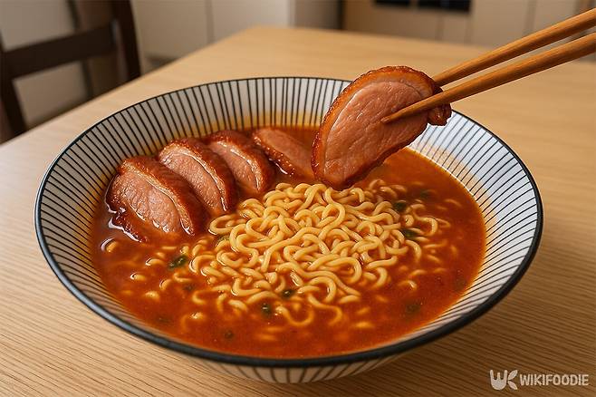 오리고기는 지방 함량이 있지만 불포화지방 비중이 높은 편이라 상대적으로 부담이 적다. 특히 훈제 오리에 포함된 '오메가-3' 및 '오메가-6 지방산'은 몸속 염증을 줄여주고, 순환기 기능을 활성화하는 데 도움을 준다. 쫄깃하고 풍미가 좋아, 라면과 함께 먹을 때 육류를 섭취한다는 만족감도 높여 준다. 또한 단백질 보충을 통해 혈당이 급격히 오르는 것을 예방한다. 훈제 향이 라면 국물의 단조로움을 보완해 풍성한 맛을 더해주는 것 역시 큰 장점이다.
