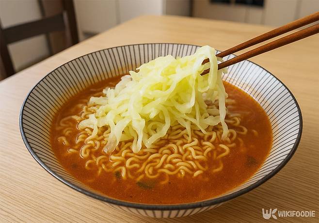 라면을 끓일 때 채 썬 양배추를 넣으면 국물에 시원한 단맛을 더할 수 있고, 양배추의 높은 식이섬유와 부피 덕분에 면 섭취량을 조절하기 쉬워져 섭취 열량을 자연스럽게 낮출 수 있다. 이때 양배추는 기호에 따라 채 써서 넣거나, 혹은 식감을 살리기 위해 한입 크기로 큼직하게 썰어 넣어도 좋다.